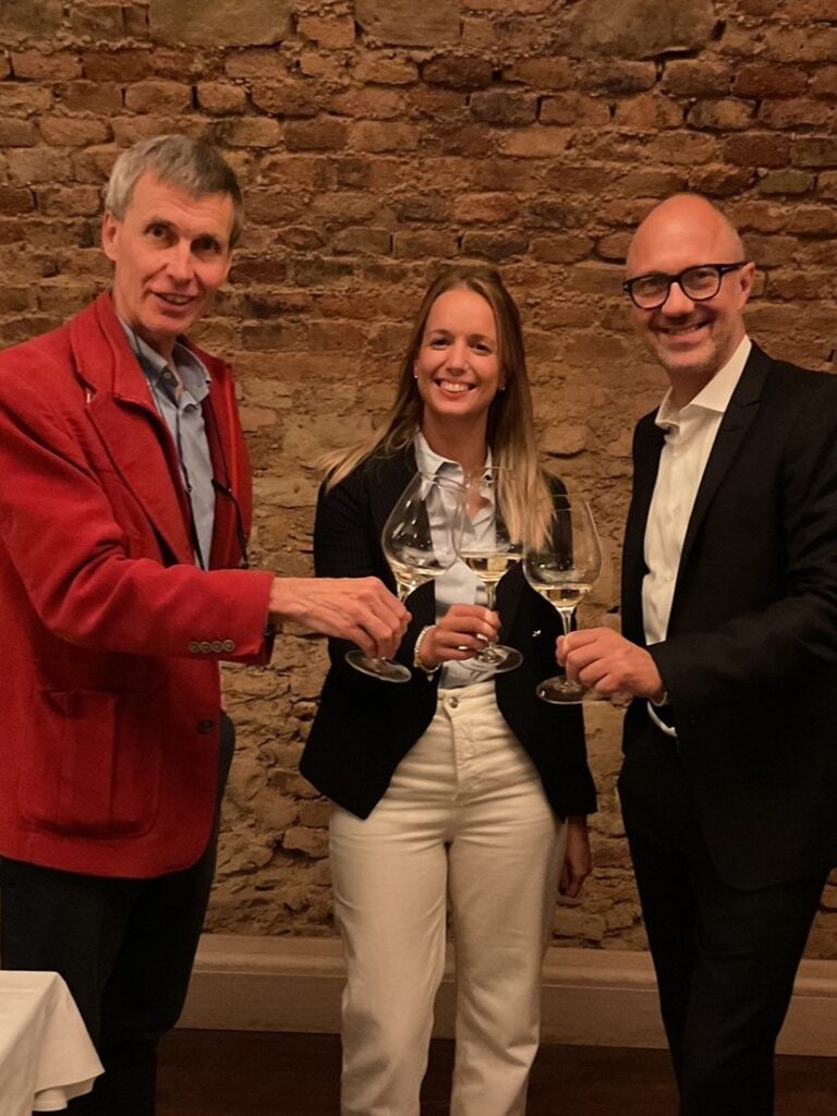 Chrisitan Bauer mit Ambra Berardi und Edoardo Peduto vom Consorzio Lugana